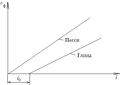 | Рис.М.5.5. Зависимость скорости фильтрации от градиента напора |