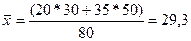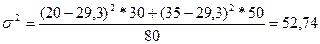Пример: 30 экспертов спрогнозировали прибыль 20 млн., 50 экспертов – 35 млн. оцените среднее ожидаемое значение прибыли и возможный размах вариации.
