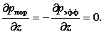 Начальное условие: при t = 0 имеем p = p пор, а p эфф = 0, то есть в первый момент все давление передается на воду, а на скелет не передается.