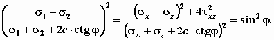 Условие прочности Мора записывается в напряжениях s z, s x и t xz следующим образом: