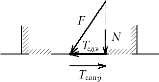 Если не учитывается величина отпора грунта со стороны, куда направлен сдвиг, то подсчитывается вертикальная составляющая действующих сил N (рис.М.12.17), затем она умножается на коэффициент трения f и добавляются силы сцепления по контакту C. После этого получившееся максимально возможное значение силы сопротивления делится на величину сдвигающей силы T сдв и тем самым находится величина коэффициента запаса (надежности), то есть