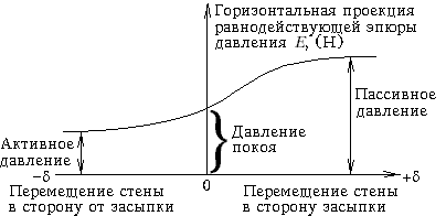 | Рис.М.14.3. Зависимость давления грунта на стену от ее перемещения |