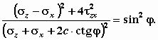Рассматривая простейшее напряженное состояние, соответствующее гладкой без трения подпорной стене и горизонтальной поверхности засыпки, когда t zx = 0, и извлекая корень из обеих частей этого уравнения, получим