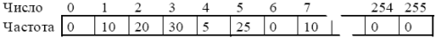 | Число | Частота | Исходный размер, бит | Уплотненный размер, бит | Уменьшение размера, бит |