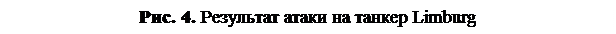 Гигантский танкер Limburg был спущен на воду в 1998 году. Длина танкера водоизмещением 300 тысяч тонн – 330 метра, ширина – 60 метров. Танкер с 56 тысячами тонн сырой нефти на борту вышел 22 сентября 2002 г. из Бахрейна. Он готовился принять 140 тысяч тонн нефти в Йемене и взять курс на Малайзию. 6 октября при подходе к терминалу в провинции Хадрамаут на юге Йемена с судном столкнулась баржа или плот, после чего прогремел взрыв и вспыхнул пожар, уничтоживший судно (Рис. 4).