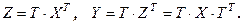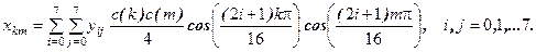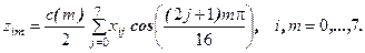обозначает выход одномерного ДКП строк X. Таким образом, двумерное ДКП может быть получено вначале выполнением одномерного ДКП строк X со следующим за ним одномерным ДКП столбцов Z. В матричной форме преобразование