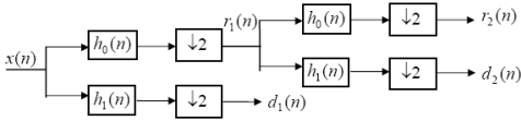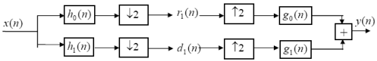 Одномерное дискретное вейвлетное разложение может быть описано в терминах банка фильтров. Входной сигнал x (n) фильтруется низкочастотным фильтром h 0 (n) и высокочастотным фильтром h 1(n). Далее производится децимация (прореживание)