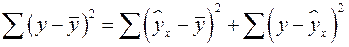 – сумма квадратов отклонений, объясненная регрессией (или факторная сумма квадратов отклонений);
