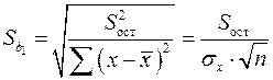 Стандартная ошибка коэффициента регрессии определяется по формуле: