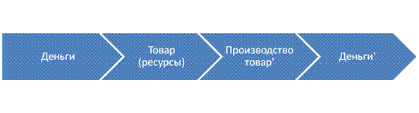 Процесс воспроизводства порождает кругооборот фондов в экономике, который может быть записан следующим образом: