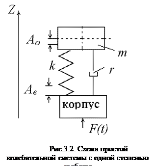обозначим как АВ, а частоту - ωВ. В системе с одной степенью свободы внешней силе F(t) в каждый момент времени будут противодействовать силы инерции массы Fm, жесткости Fk и демпфирования Fr: