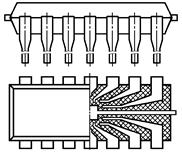 Опрессовка — защита изделия от влаги толстым слоем полимерного материала (термореактивная или термопластичная пластмасса) методом литьевого или трансферного прессования в специальных формах. Этот вид влагозащиты используют в основном для малогабаритных компонентов (ИС, ЭРЭ, микросборок; рис. 3.34, в), что позволяет надежно укрепить внешние выводы и создать несущую конструкцию, которая способна выдерживать механические перегрузки и пригодна для автоматизации установки компонентов на плату. Чтобы избежать нарушения герметизации при колебаниях температуры, подбирают материалы корпуса и выводов с близкими значениями ТКЛР. Толщина опрессовки выбирается с учетом надежности влагозащиты, технологических требований (при толщине стенки менее 2 мм возможно повреждение защищаемого компонента в пресс-форме), внутренних напряжений (при больших толщине и изменении температуры могут возникнуть большие внутренние напряжения). При выборе материала для опрессовки учитывают также его диэлектрические свойства.