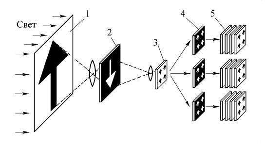 | Рис. 4.2. Последовательность изготовления ФШ: 1 – оригинал, выполненный в увеличенном масштабе; 2,3,4 – промежуточные ФШ; 5 – рабочие ФШ |