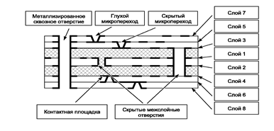 Рис. 4.17. Конструкция МПП для высокоинтегрированной элементной базы