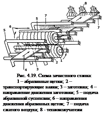 Механическая зачистка поверхности фольгированных диэлектриков применяется для удаления окислов, остатков смазки, пленок и других загрязнений. Ее осуществляют на специальных зачистных станках (рис. 4.19) и на установках гидроабразивной очистки.