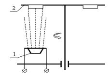Подложки размещают на заземленном аноде. Катод – мишень из материала, подлежащего распылению находится на расстоянии L = 25…75 (чаще 60) мм от анода. Диаметр мишени обычно 300…350 мм.