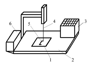 Печатная плата 1 устанавливается на монтажный стол 2, на котором размещаются подготовленные компоненты, разложенные по ячейкам тары 3. Место установки компонента на ПП обозначается лучом света 4. Курсор 5 перемещается по ПП в соответствии с программой от устройства управления 6 и, останавливаясь, указывает место установки компонента. При этом загорается лампочка подсветки ячейки, из которой следует взять и установить компонент на ПП.