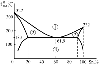 Рис. 4.79. Диаграмма состояния системы Sn – Pb: