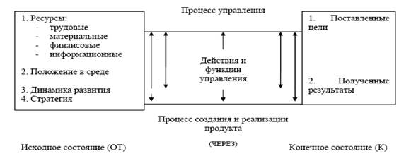 Управление предприятием состоит из ряда функциональных подсистем: стратегическое и текущее управление предприятием; планирование; управление персоналом; управление производством; управление маркетингом; управление финансами; управление инвестициями. В основе всех перечисленных функций заложена идея развития. Очень важно различать изменения, которые так или иначе происходят во всех организациях, и изменения, которые планируются менеджментом организации с определенной целью («ОТ – ЧЕРЕЗ - К»). Планируемые организационные изменения представляют собой сознательные действия менеджеров и работников по улучшению работы структурных подразделений или организации в целом по важным для них направлениям. Схематично место процесса управления изменениями можно представить следующим образом (рисунок 6).