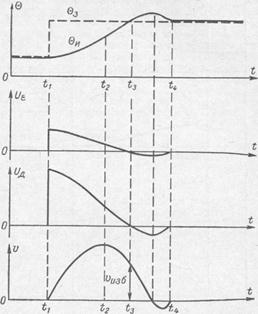 по инерции проскакивает его в момент t3 и возвращается в это положение в момент U под влиянием напряжения ошибки Ut, сменившего знак в момент