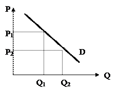 Спрос - платежеспособная потребность, т.е. потребность, предъявленная на рынке и обеспеченная деньгами. Величина спроса – то количество товаров, которое потребитель может и готов купить по данной конкретной цене. Закон спроса гласит, что чем выше цена товара, тем меньше величина спроса при прочих равных условиях. Аргументами в пользу закона спроса являются: а) принцип убывающей предельной полезности (принцип, согласно которому, каждая последующая единица блага приносит потребителю меньшее удовлетворение, а следовательно он готов платить за нее меньшую цену); б) эффект дохода (означает, что, например, снижение цены блага делает потребителя относительно богаче, и он может на высвободившуюся сумму дохода купить больше данного блага); в) эффект замещения (означает, что, например, снижение цены блага, делает это благо дешевле относительно других благ и потребитель замещает этим относительно подешевевшим благом другие, которые теперь относительно дороже). Характерная зависимость между ценой (Р) и количеством приобретаемого блага (Q) иллюстрируется с помощью кривой спроса, которую обозначают D (от английского demand - спрос).