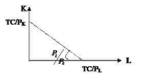 Денежные затраты на приобретение ресурсов иллюстрирует другая кривая – изокоста (см. рис. 20). Если цену труда обозначить как PL, а цену капитала - PK, то валовые издержки (обозначаемые в дальнейшем ТС) составят: ТС = PLL + PKK.