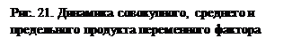 Динамика совокупного, среднего и предельного продукта представлена на рисунке 21 и используется для анализа деятельности фирмы в краткосрочном периоде.