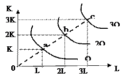 oа = ab = bc oа < ab < bc Рис. 22а. Изокванты при постоянной Рис. 22б. Изокванты при убывающей