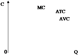 Рис. 31с иллюстрирует ситуацию, когда рыночная цена ниже ATCmin, но выше AVCmin. Такая ситуация называется минимизацией убытков. Величина убытка на графике показана верхним прямоугольником. В данной ситуации, какой бы объем производства ни установила фирма, она несет убытки. Однако, при Q1 они будут минимальными. Фирма покрывает VC и часть FC (убытки при закрытии фирмы больше, чем в случае функционирования). На краткосрочном отрезке времени фирма может работать с убытками, потому что она рассчитывает на получение прибыли в будущем по мере роста цены ее продукции или снижения издержек производства.