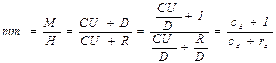 Отношение наличности к депозитам определяется поведением населения, которое решает, какую часть денег держать в виде наличности. Обозначим это отношение через cd (сd=CU/D). Теперь мы можем представить соотношение между денежной массой и денежной базой следующим образом:(1)