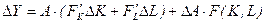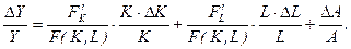 Поделив обе части соотношения на Y и, учитывая, что Y=AF(K,L), получают: