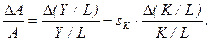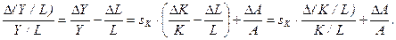 Учитывая, что обычно под экономическим ростом понимают изменение выпуска на душу населения, вычтем из левой и правой части соотношения (4) темп роста занятости:
