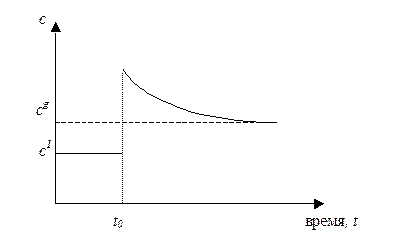 Рис. 85. Динамика потребления на душу населения при снижении нормы сбережения c уровня