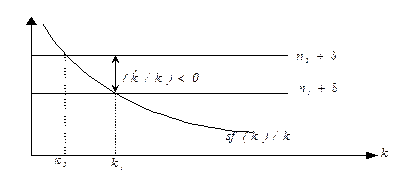 Рис.87. Изменение капитало-вооруженности в результате увеличения темпа роста населения от