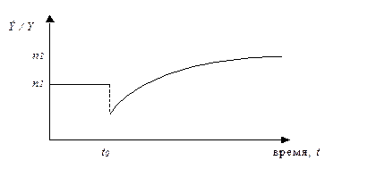 Рис.88. Динамика темпа роста выпуска при увеличении темпа роста населения с n1 до n2