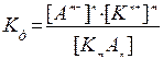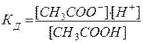 , где [Кn+], [Аm–], [КmАn] – равновесные концентрации компонентов; m и n – стехиометрические коэффициенты компонентов в уравнении диссоциации; Кд – константа равновесия для процесса диссоциации слабого электролита, называемая константой диссоциации..