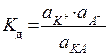 отражающего диссоциацию слабого электролита в растворе, константа равновесия будет равна