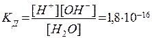 Кд·[Н2О] = [Н+][ОН‾] = 1,8·10-16·55,6=10-14.