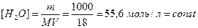 Ничтожно малая диссоциация воды позволяет считать концентрацию недиссоциированных молекул равной общей концентрации, которая для воды объемом 1л. составляет: