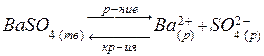 Например, возьмем насыщенный раствор нерастворимого сильного электролита ВаSО4. В растворе устанавливается гетерогенное равновесие между осадком (твердой фазой) электролита и ионами электролита в растворе: