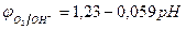 Потенциал окисления гидроксид-ионов (потенциал кислородного электрода) рассчитывается по уравнению (см. раздел 10.3):