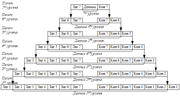 Рис. 2.2 Формирование пакета каждого уровня семиуровневой модели