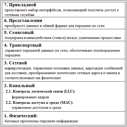 Каждый уровень модели выполняет свою функцию. Чем выше уровень, тем более сложную задачу он решает.
