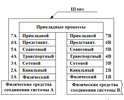 Шлюз является наиболее сложной ретрансляционной системой, обеспечивающей взаимодействие сетей с различными наборами протоколов всех семи уровней. В свою очередь, наборы протоколов могут опираться на различные типы физических средств соединения.