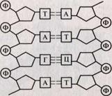 Рис. Участок молекулы ДНК. Комплементарное соединение нуклеотидов разных цепей.