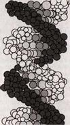 Цепи нуклеотидов образуют правозакрученные объемные спирали по 10 оснований в каждом витке. Последовательность соединения нуклеотидов одной цепи противоположна таковой в другой, т.е. цепи, составляющие одну молекулу ДНК, разнонаправленны, или антипараллельны: последовательность межнуклеотидных связей в двух цепях направлена в противоположные стороны: 5' —3' и 3' —5'. Сахаро-фосфатные группировки нуклеотидов находятся снаружи, а азотистые основания — внутри. Цепи, закрученные друг относительно друга, а также вокруг общей оси, образуют двойную спираль. Такая структура молекулы поддерживается в основном водородными связями (рис.).