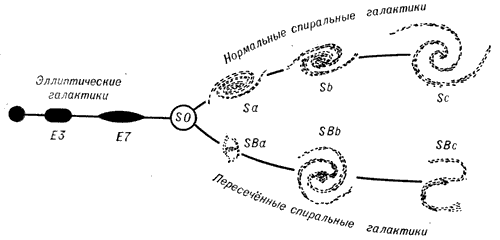 Рис. 2. Схема классификации галактик (по Э. Хабблу).