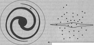 Если проследить изменение форм эллиптических галактик от сферической до чечевицеобразной и форм спиральных галактик от Sa ко всё более сплюснутой системе Sc, то напрашивается вывод о существовании ещё одного типа галактик, промежуточного между этими основными. На рис. 2 приведена одна из морфологических классификаций галактик - так называемый камертон Хаббла.