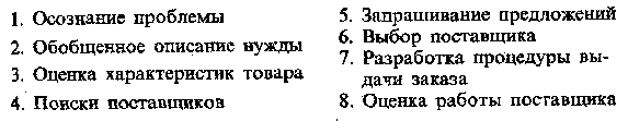 Мы с вами рассмотрели этапы, которые необходимо преодолеть в ситуации производства закупок для решения новых задач. В ситуациях повторных закупок с изменениями или повторных закупок без изменений некоторые из этих этапов можно сократить или обойти вообще. В других ситуациях может потребоваться включение в процесс каких-то дополнительных этапов. Продавец товаров промышленного назначения должен подходить к рассмотрению каждой отдельной ситуации конкретно.