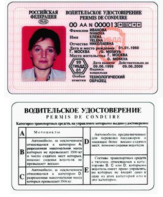 Бланк водительского удостоверения, изготовленный на базе комплексных автоматизированных систем изготовления и учета водительских удостоверений на специальной синте-тической бумаге розового цвета с защитной сеткой. В левом нижнем углу располагается цветная фотография. Размер удостоверения - 85 х 55 мм.